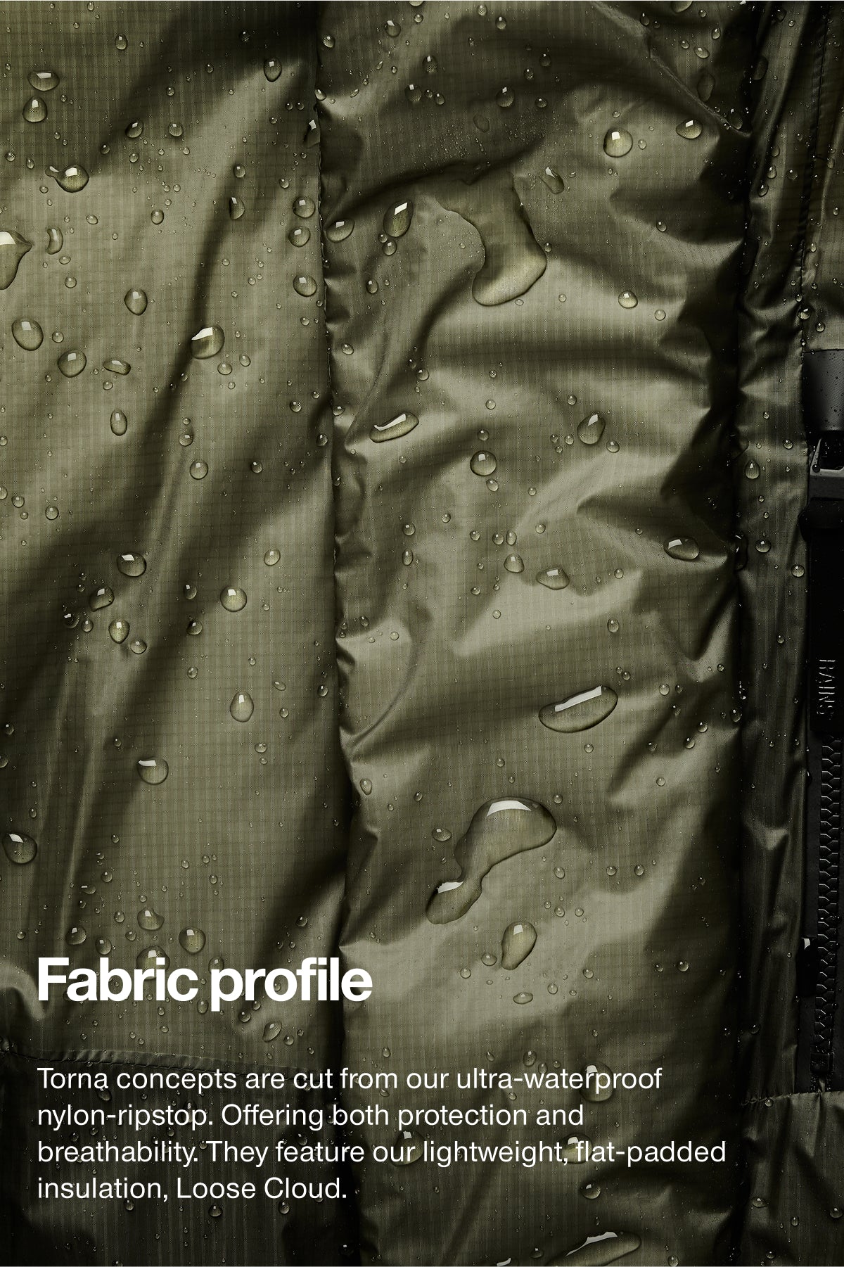 A heavy-duty winter concept with a subtle, premium gloss finish. Torna offers serious weather protection, with a waterproof nylon-ripstop, thick insulation, drawstring adjustments to lock in heat, and welded seams. The silhouettes flex between relaxed and streamlined but always engineered to protect.