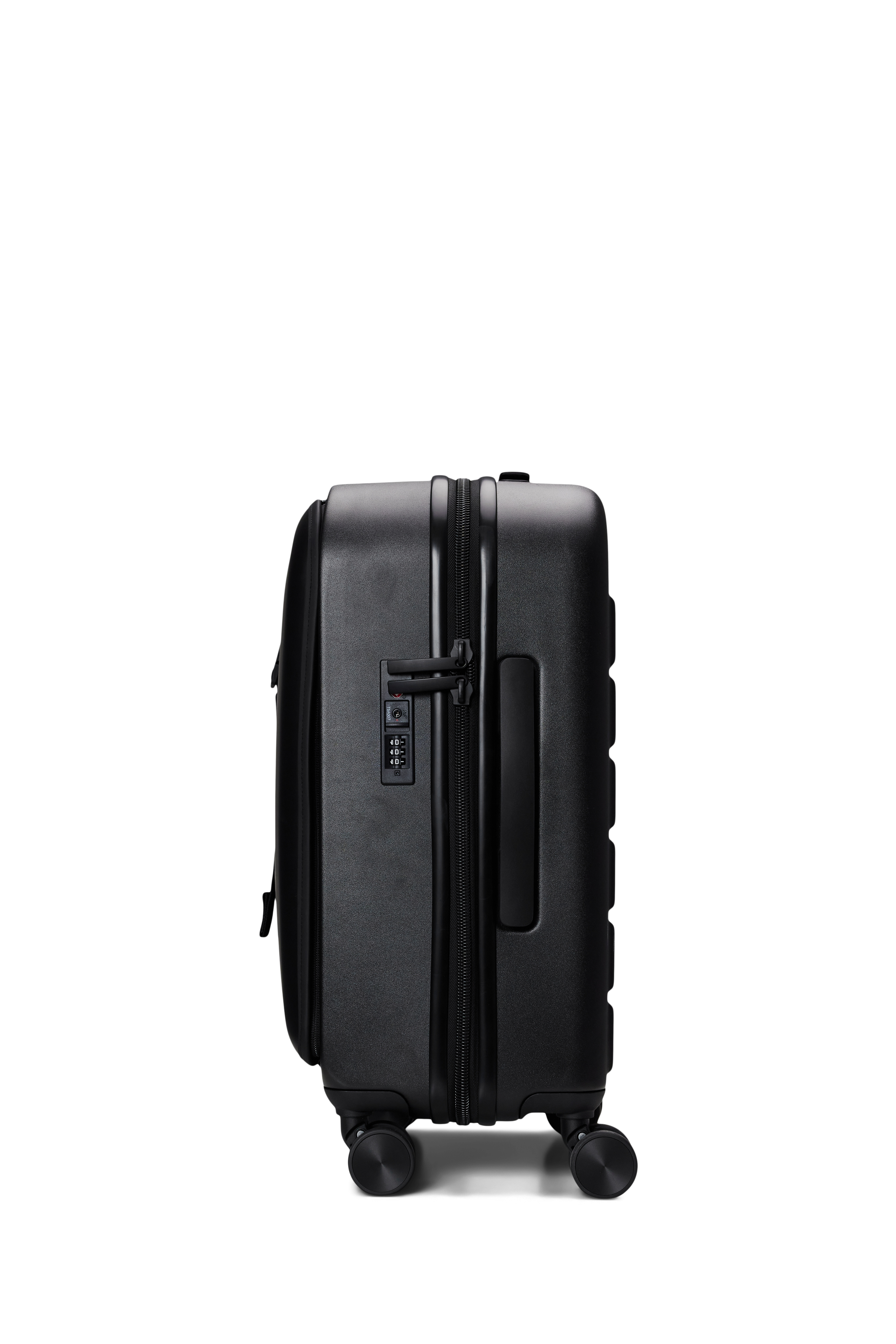 Texel Cabin Trolley is finished with a front webbing compression strap and large front pocket in waterproof PU fabric, perfect for passports, and up to 15” laptops and tablets.