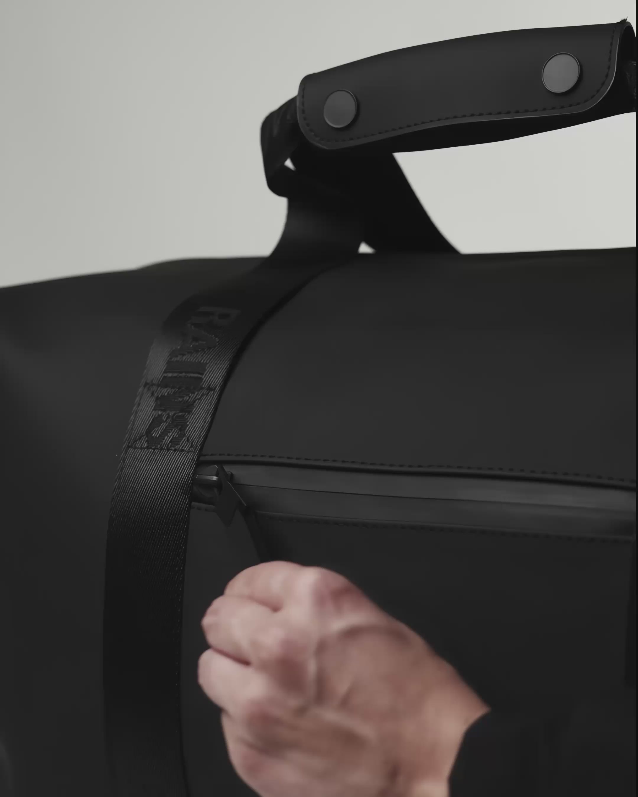 Trail Gym Bag is cut from Rains' signature PU fabric, engineered for carrying strength, durability and a smooth feel.