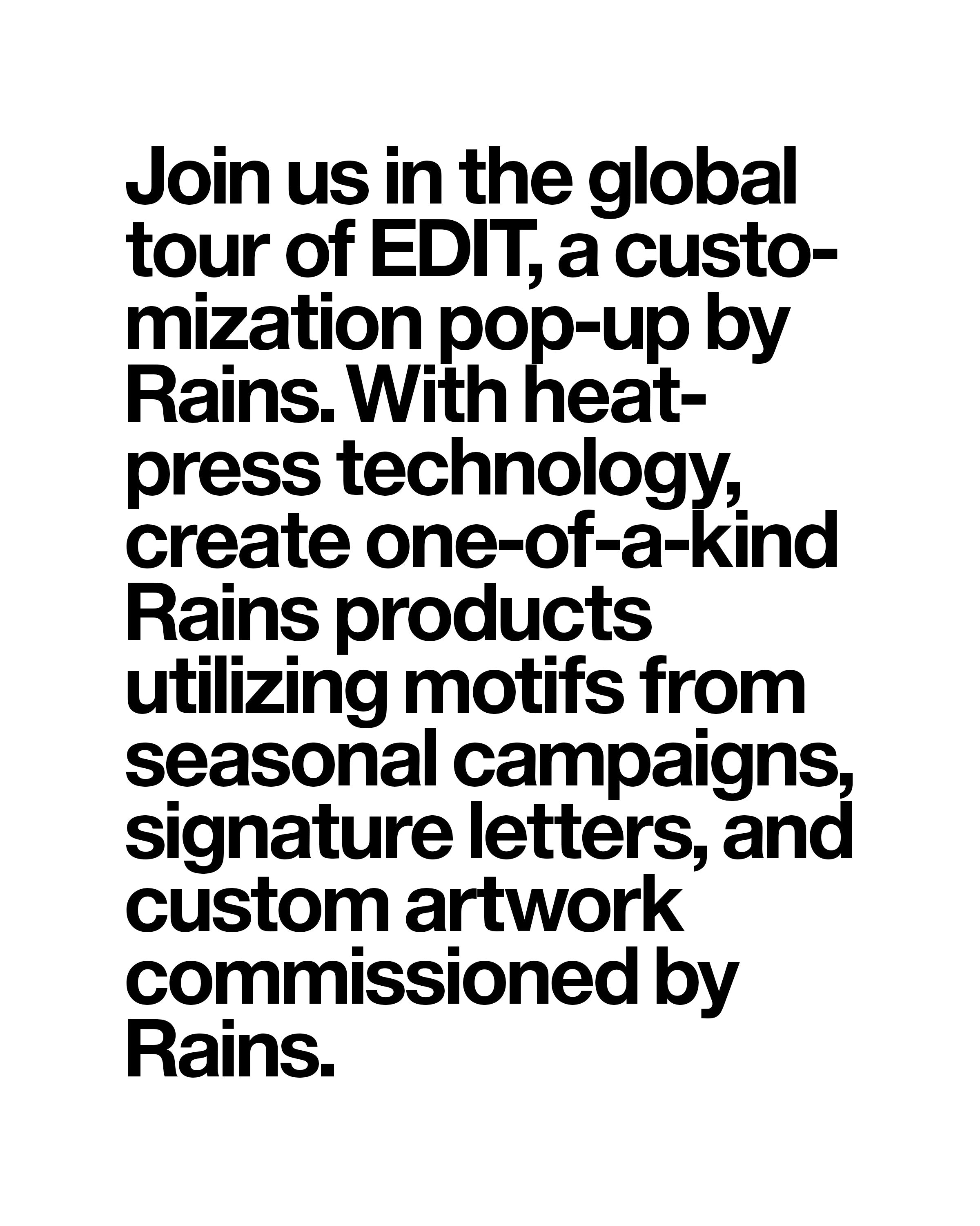 Sign up for Rains Newsletter and be the first to know when EDIT hits a store near you.