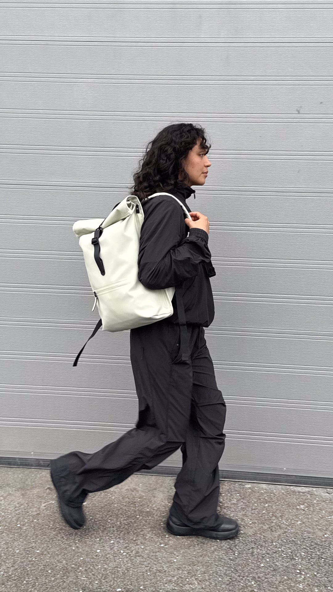 The Cooldown Track Top is cut from crisp, lightweight crinkle fabric in 100% polyamide—durable, breathable, and made to move. Designed with a relaxed, shorter fit, the style features voluminous sleeves with rushing detailing and elasticated cuffs and hem. Curved snap pockets and contrast piping highlight the organic cut lines, while a full coil zip completes the look. Rains embroidery and a subtle graphic detail add to the aesthetic.