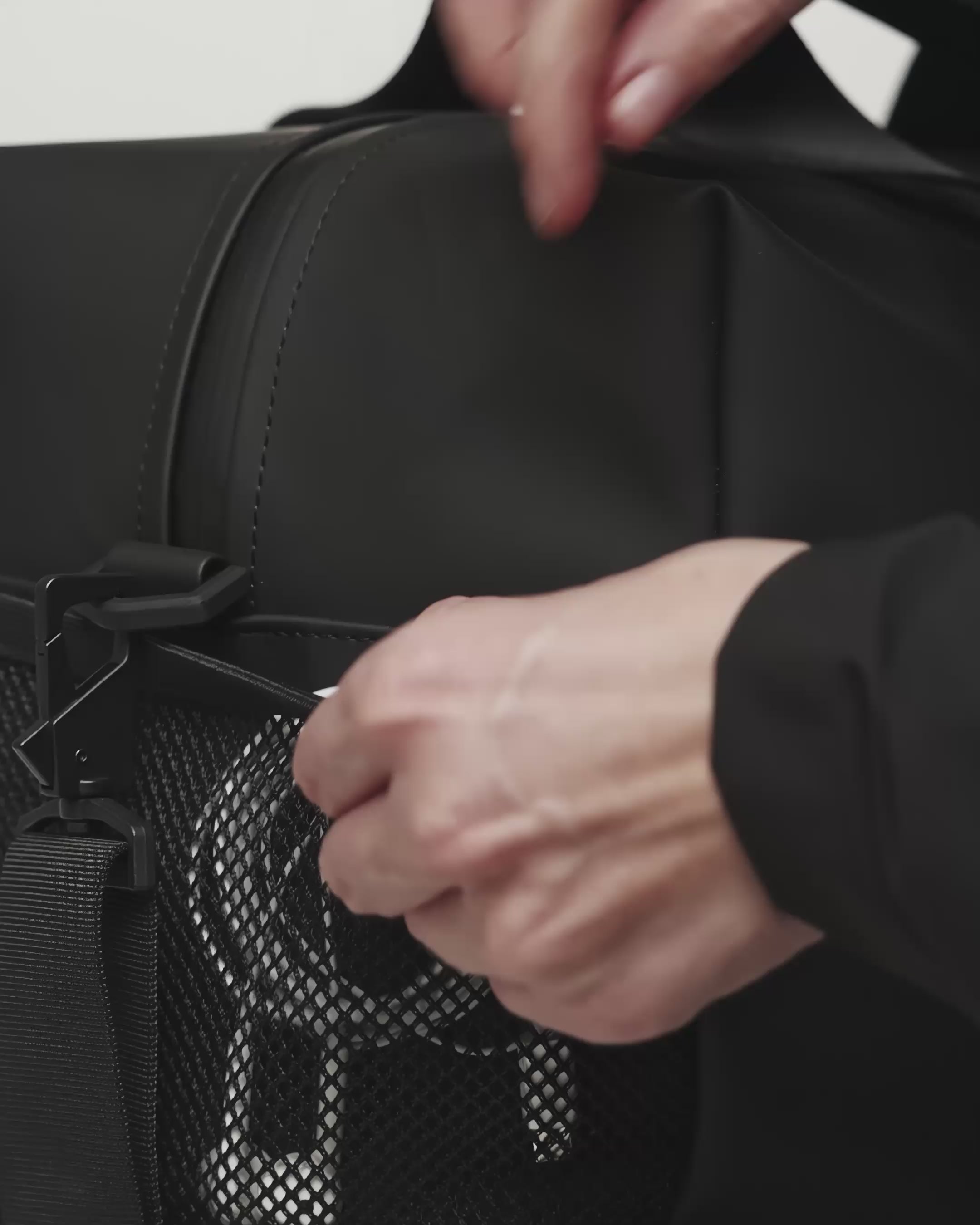 Trail Gym Bag is cut from Rains' signature PU fabric, engineered for carrying strength, durability and a smooth feel.