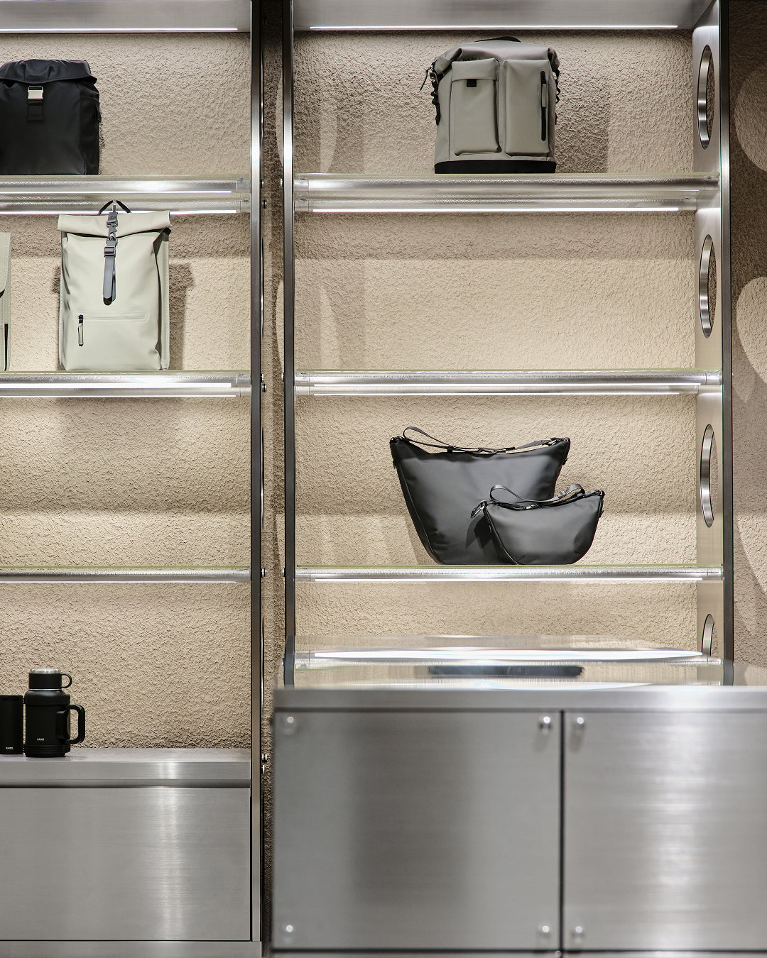 Step inside and expect to be immersed into our universe—where textured glass and lo-fi installations evoke the feeling of rain in the city, while soft furnishings and cave-like walls create warmth. A beautiful contrast.