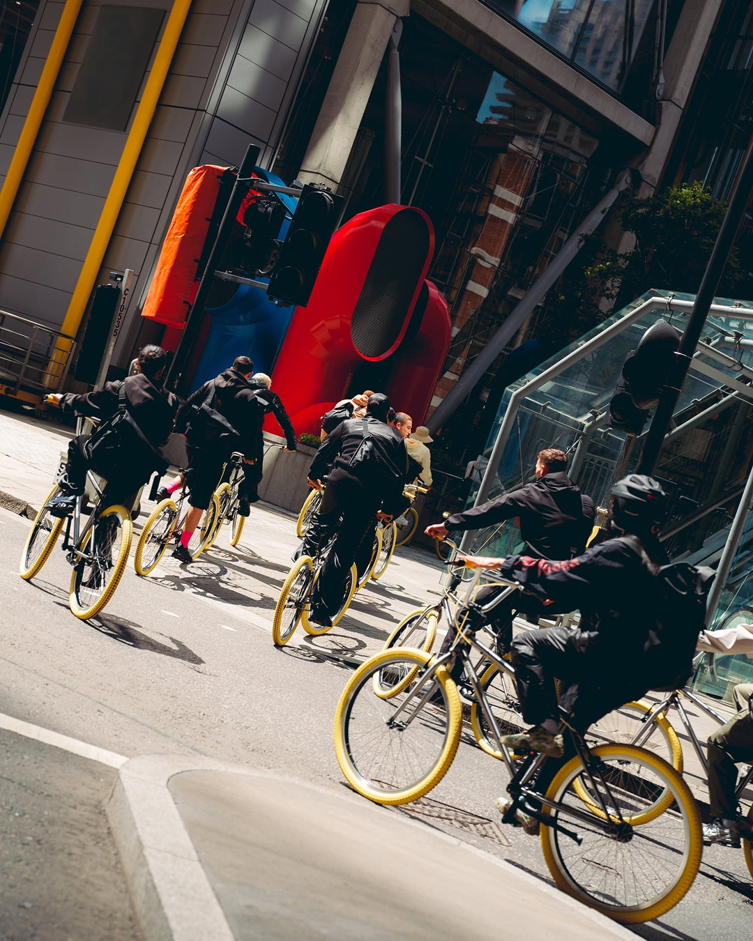 Yellow wheels took over central London as the Rains bikes made their global debut. The London-exclusive chrome bike was hard to miss as 20 riders weaved their way through the city, from Shoreditch to Embankment.
