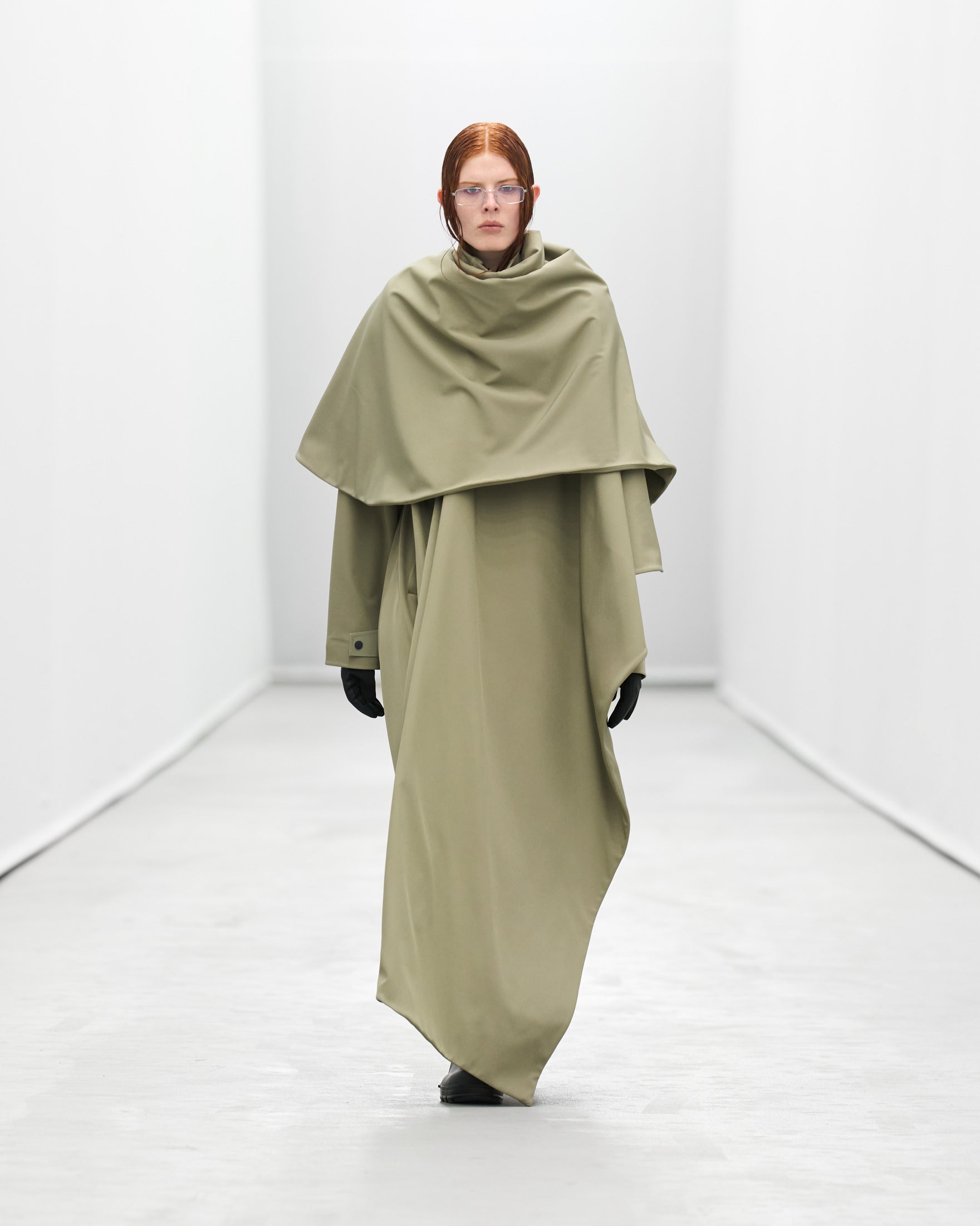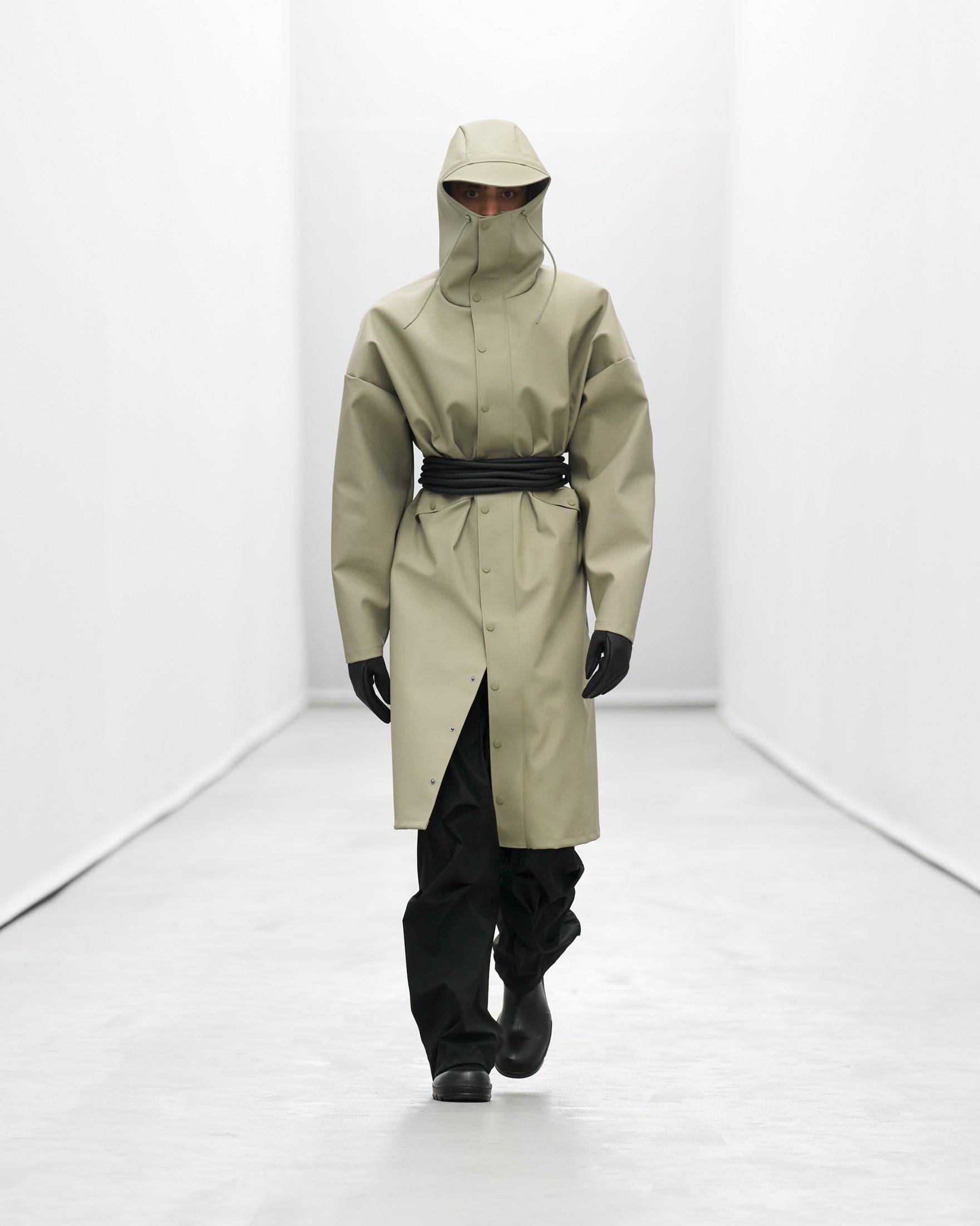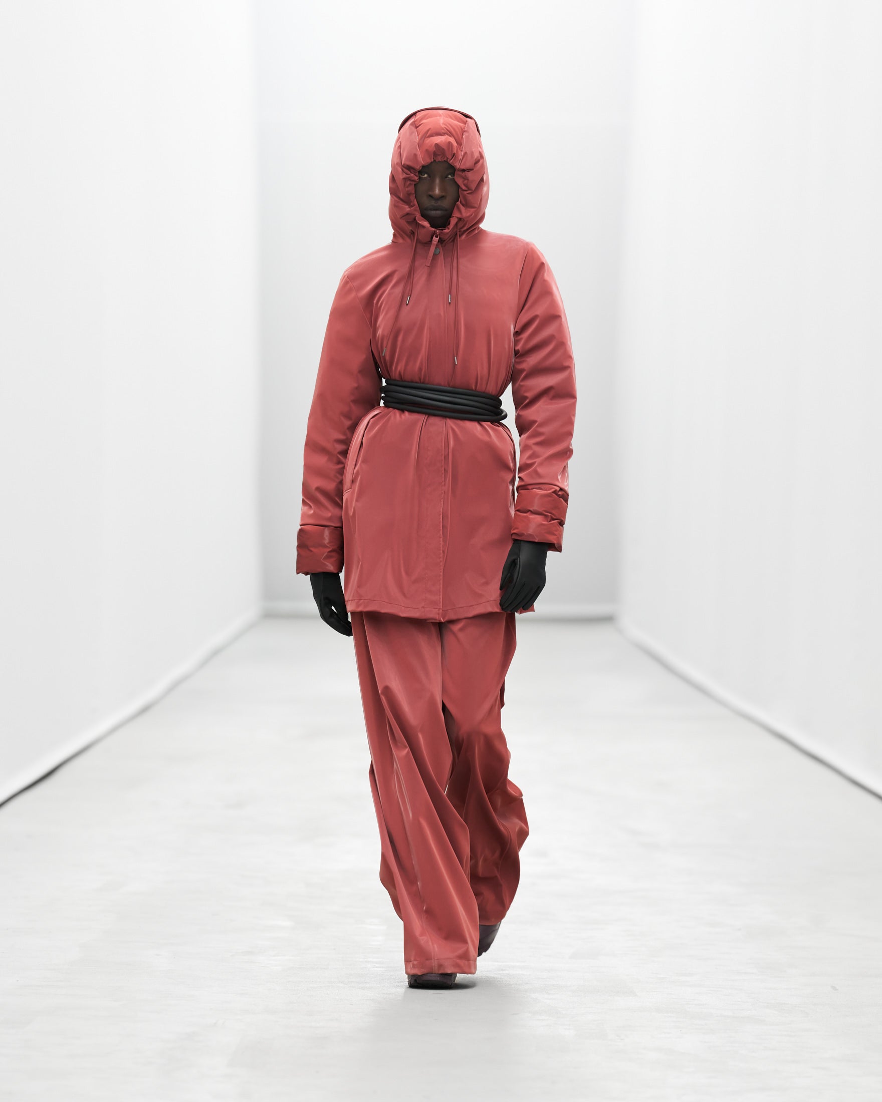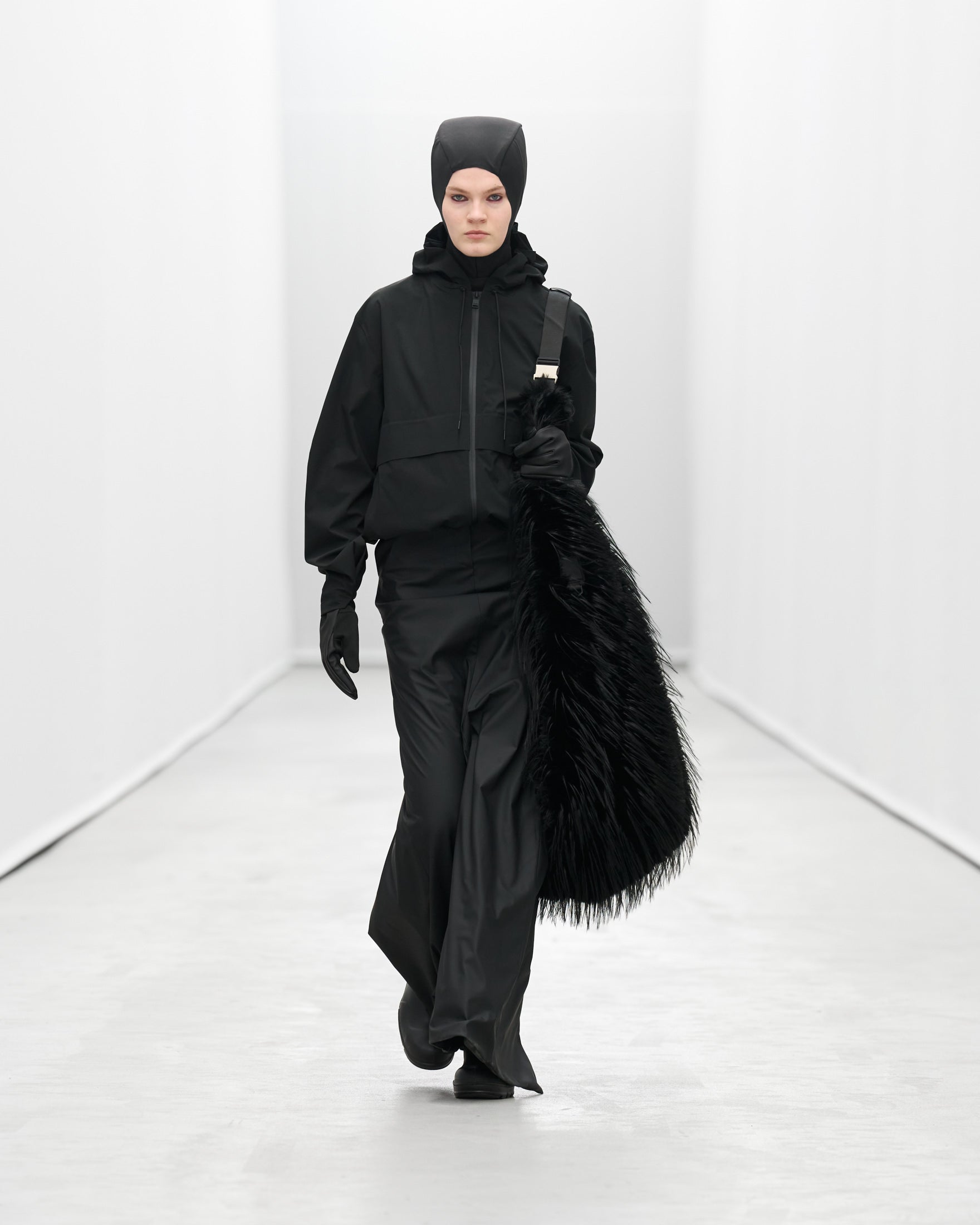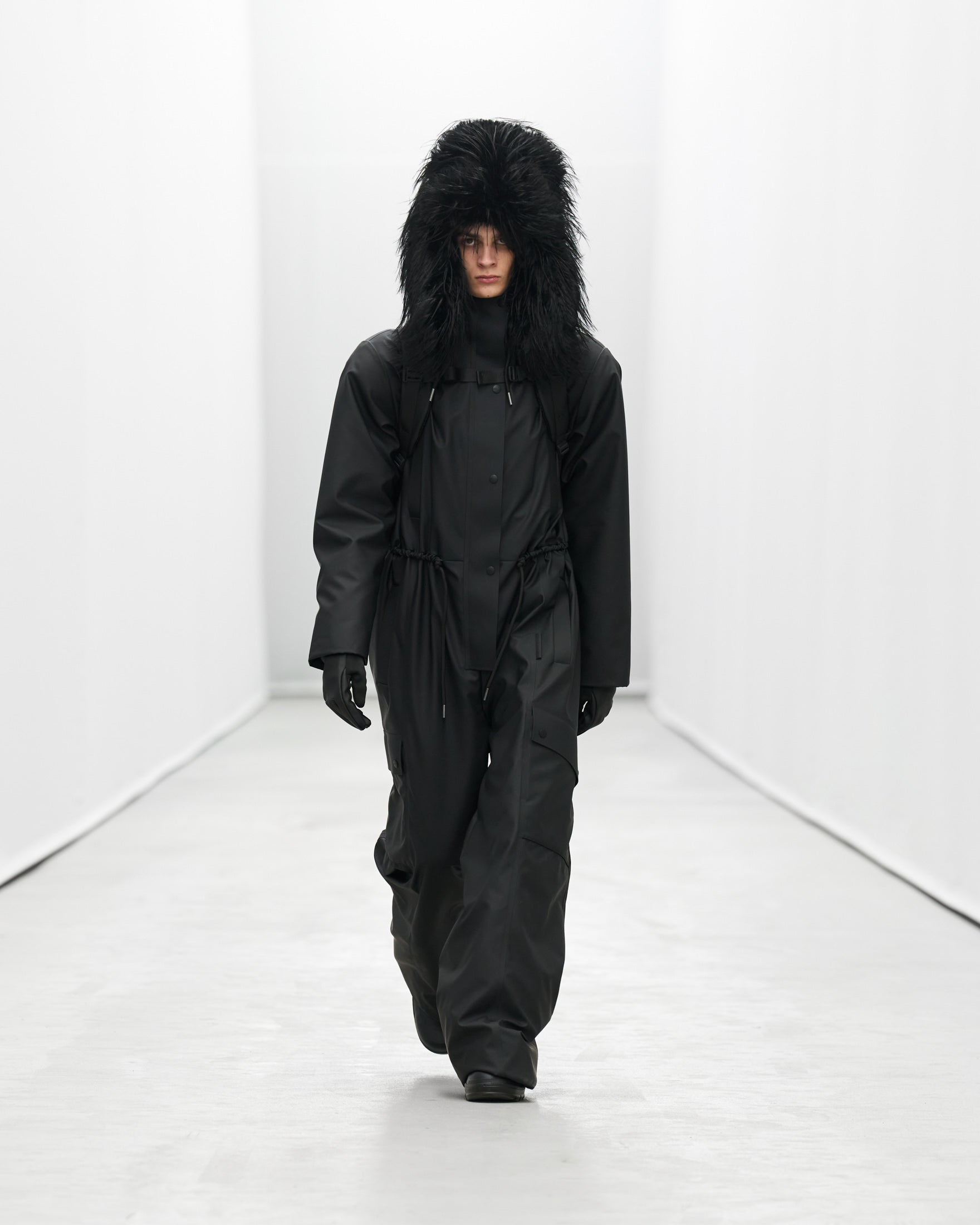 Styled by frequent collaborator Pernille Teisbaek to reflect Rains’ evolution, silhouettes and accessories becomes more extreme as the show goes on.