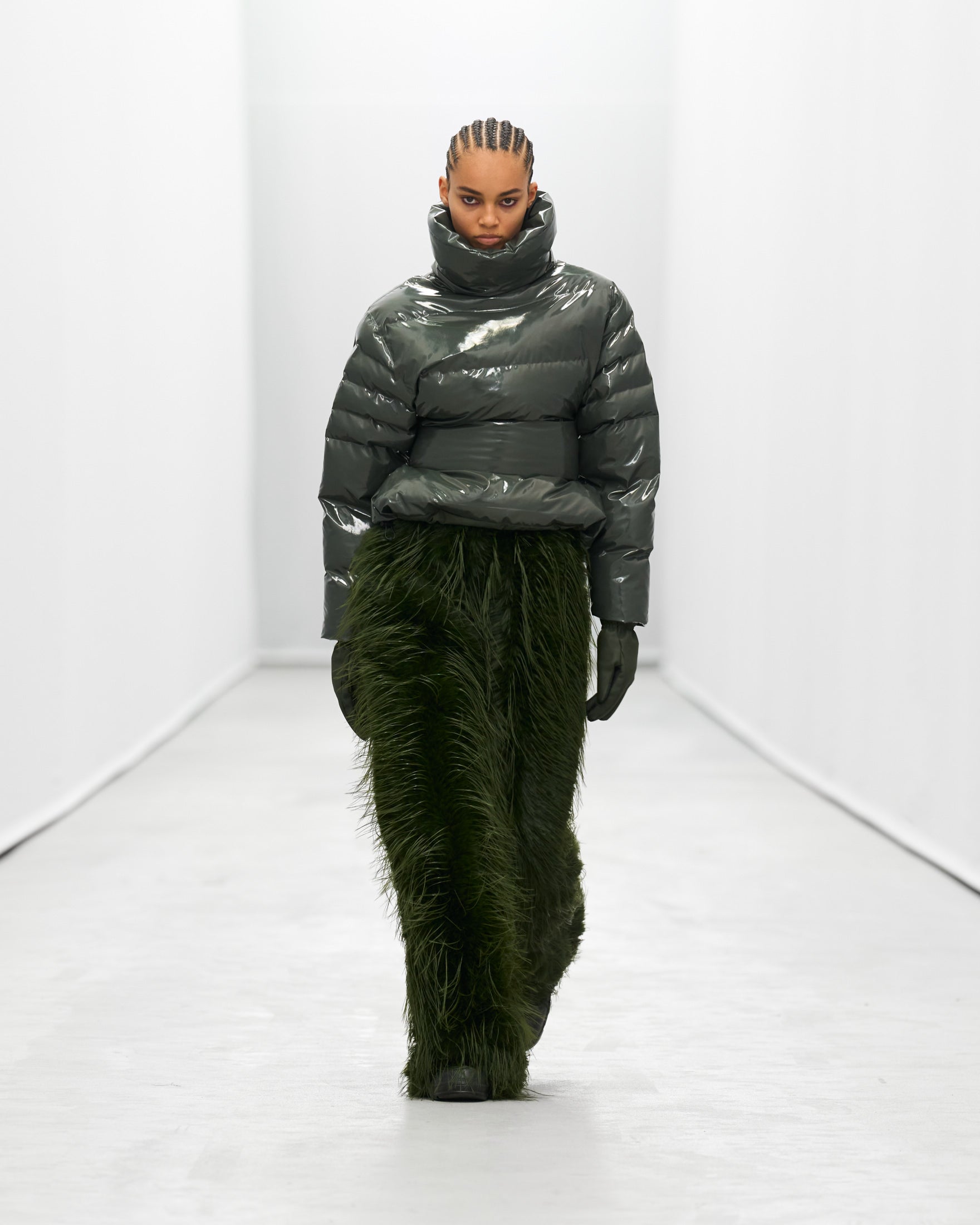 “For this show, we were interested in reinventing staples. Balancing the timeless with the extreme. FOREVER icons meet future icons. Showing not only our progression when it comes to silhouettes, but textures, colors, and design innovation, too. There’s a quiet confidence, a subtle boldness. The show itself evolves—starting with our more muted pieces and building up to a louder finale. Ready for the most extreme weather. ”